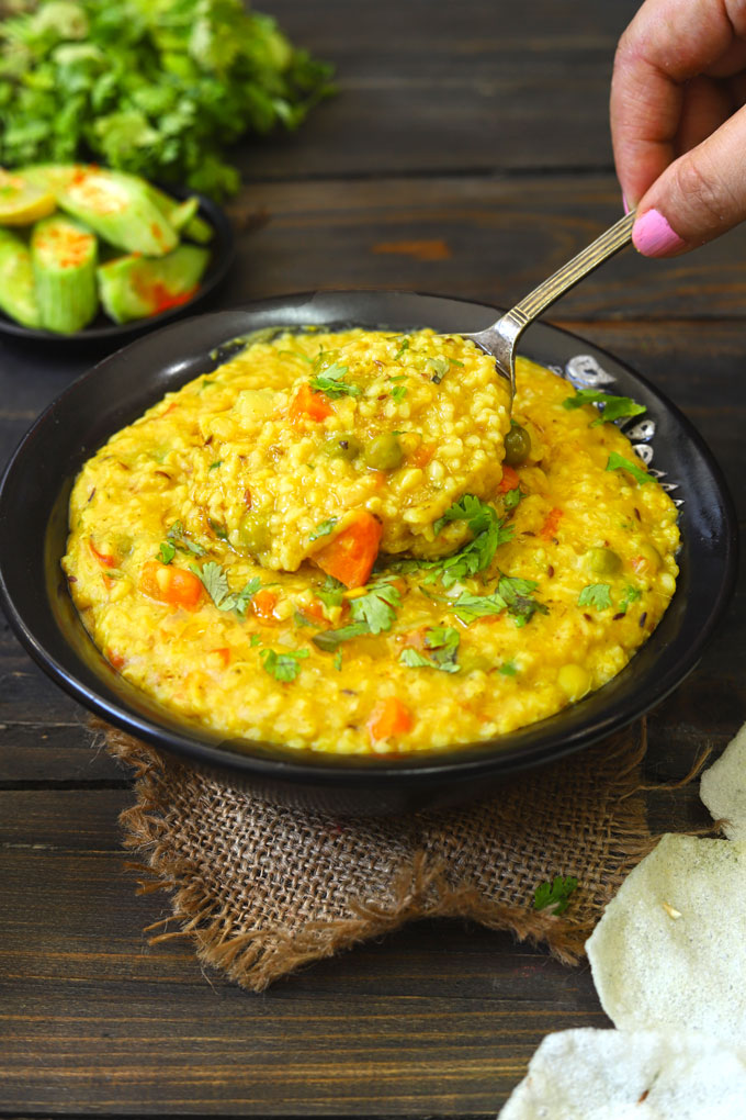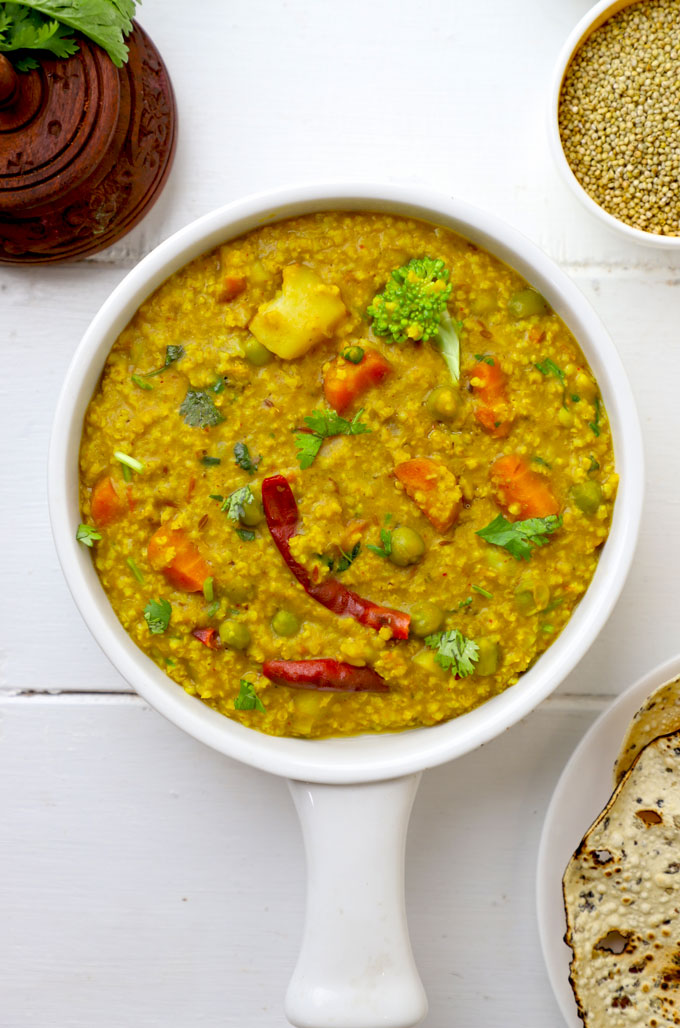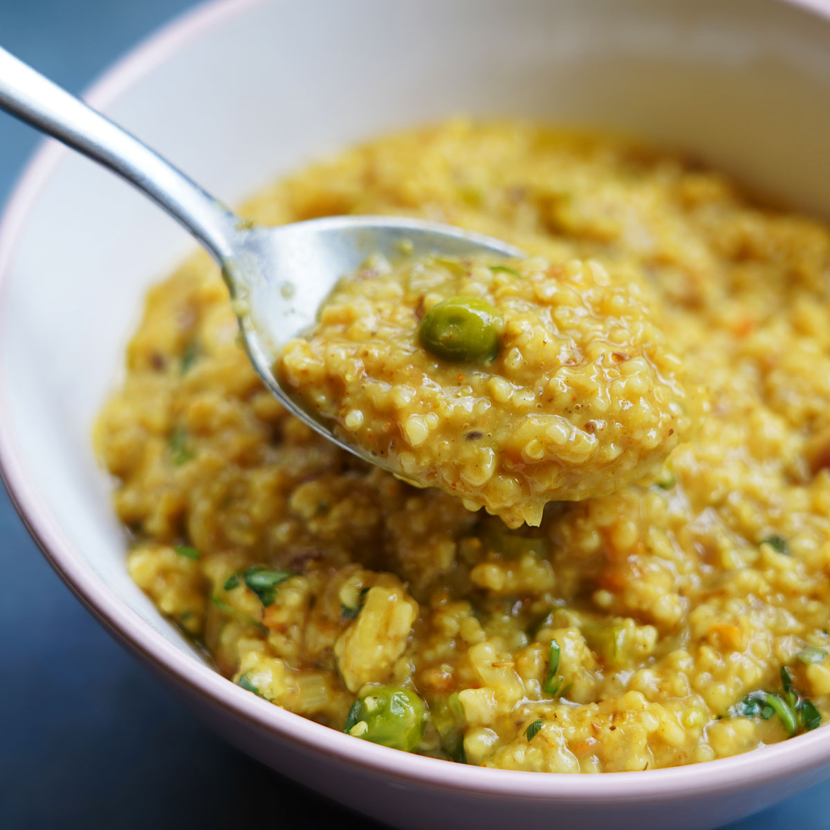 Ingredients: 1¼ cup millet (foxtail, barnyard, kodo, or little millet) ¼ cup moong dal (yellow m...